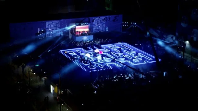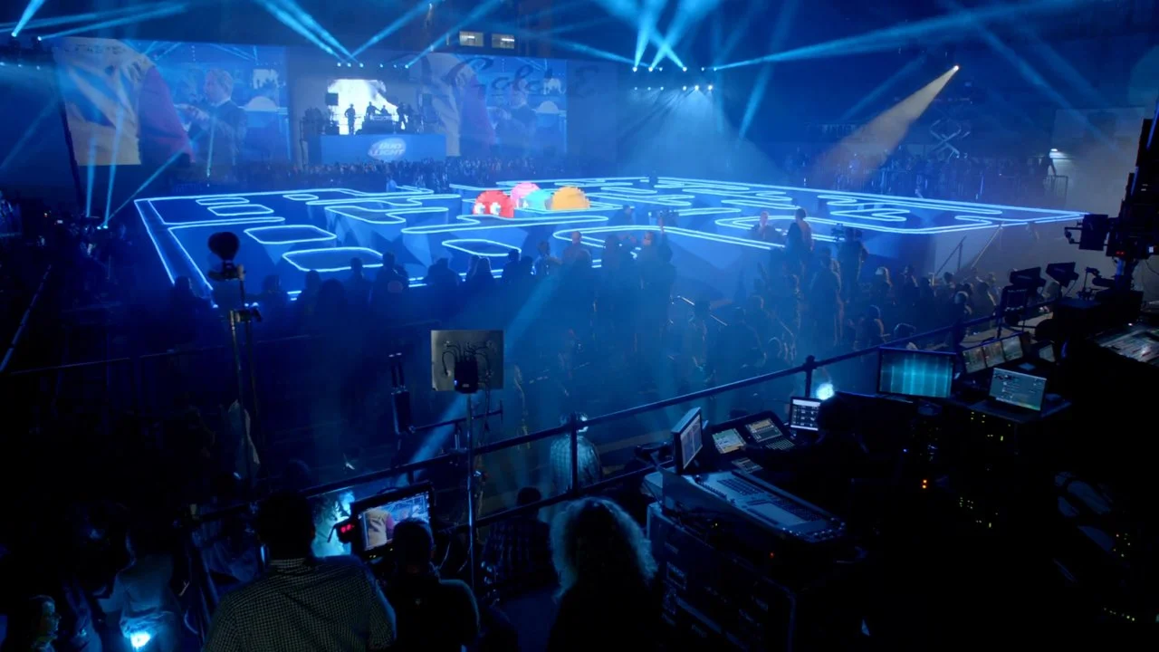 The set was the size of an NFL Football field. While the game itself secured a spot in the Guiness Book of World Records for the largest working Pac Man Game built. (almost twice the size of a NBA Basketball Court).